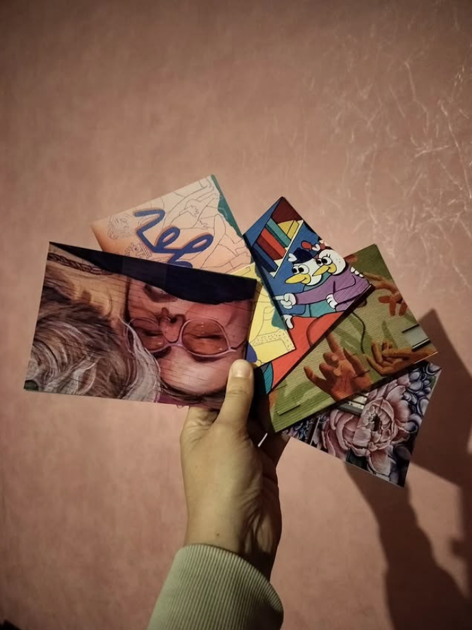 Acht postkaarten waar acht verschillende !GT murals op staan voor €10. Perfect én hip Kerstkaartje lijkt ons!