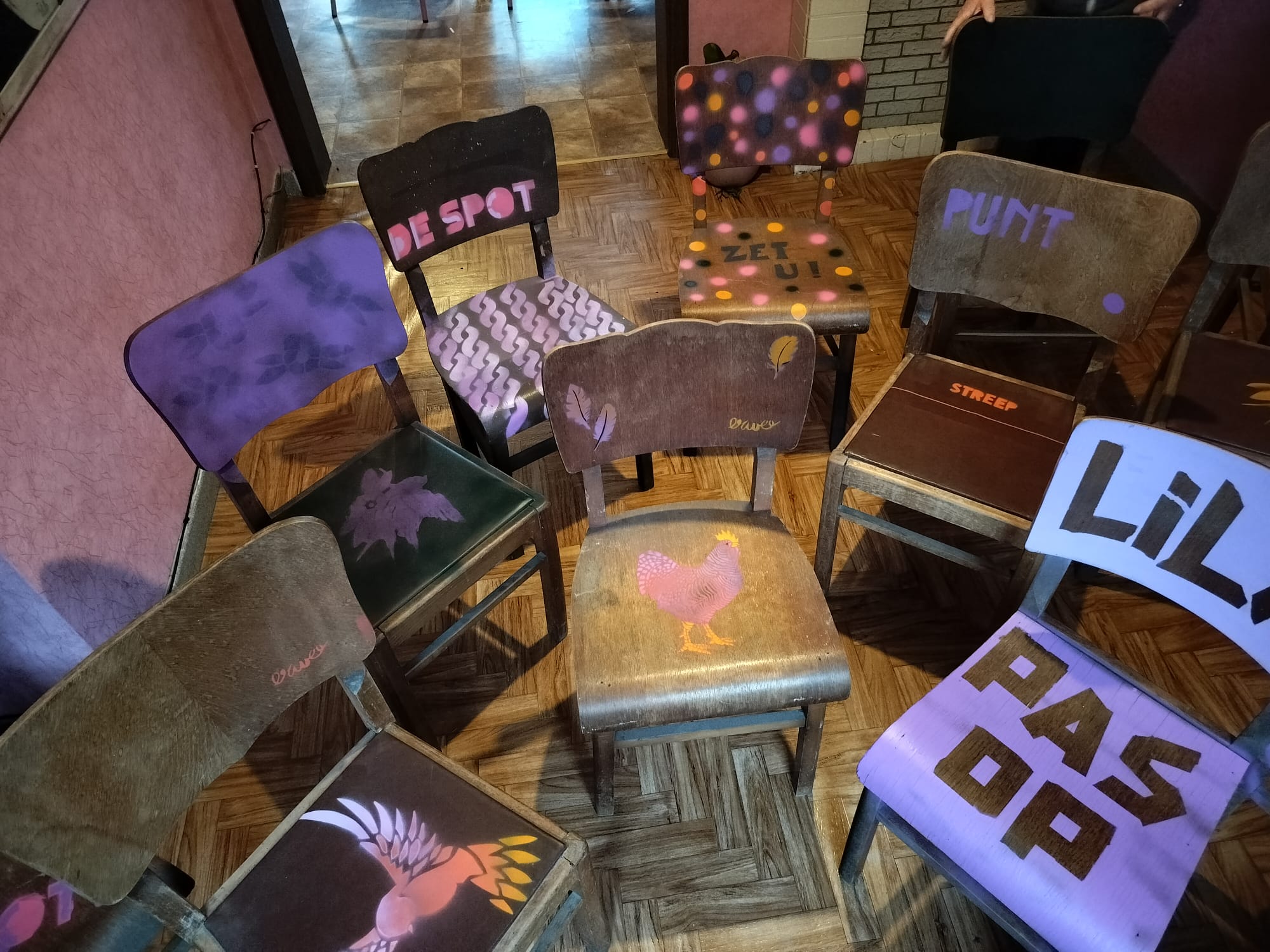 Daarna volgde een graffitiworkshop voor 55-plussers, die bijzonder veel enthousiasme losmaakte. Later in het jaar kwamen er nog extra verbindende acties, zoals de “Samen Stoelen” workshop en momenten waar buurtbewoners samen rond de vuurkorf genoten van warme gesprekken.